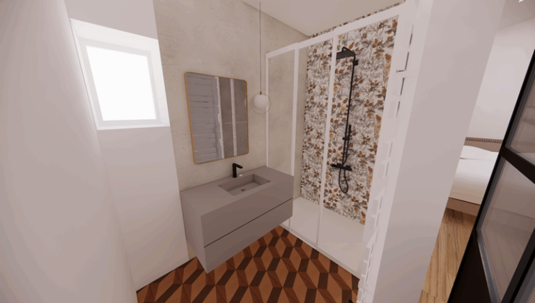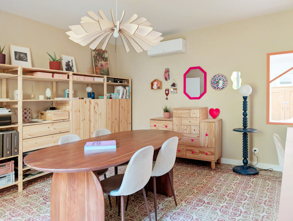 Côté décoration, ma sensibilité m’a guidée vers des tons chauds, des motifs végétaux et un jeu de rappels de motifs entre les pièces à travers poignées, appliques, papier peint…