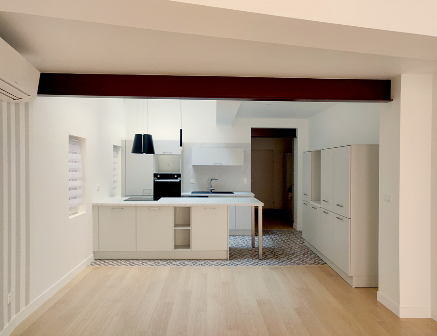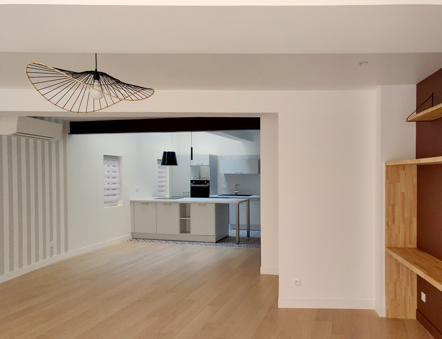Aménagement complet d’un appartement T3 sur un plateau de 90m², en R+1, dans un immeuble en hyper-centre d’Albi.