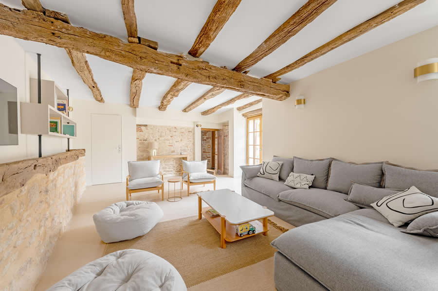 Ce grand gîte avait été rénové en grande partie. De fait, nous sont juste repris des peinture dans la salle à manger, les chambres, salle de bain, dégagements… La cuisine a été entièrement reprise, ainsi qu’un « petit salon » rénové.