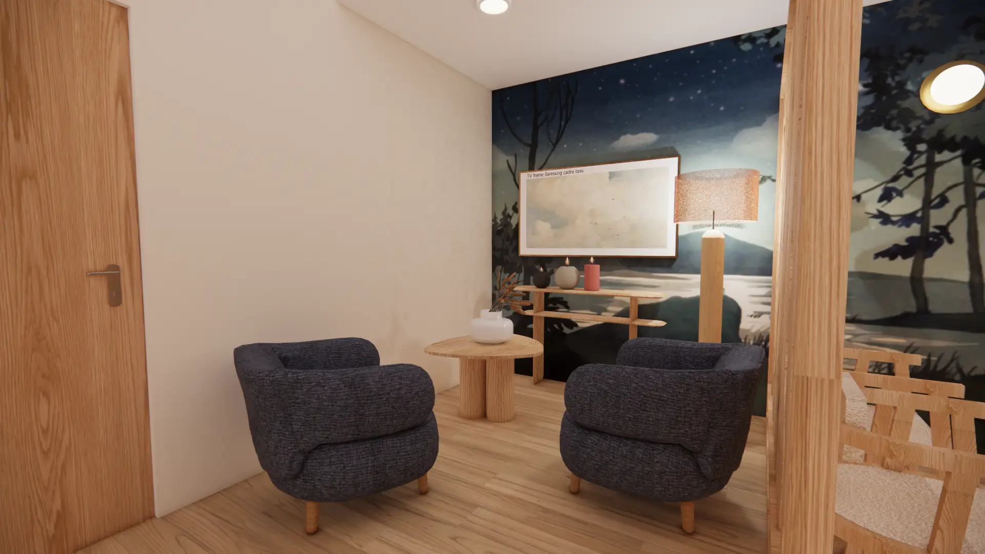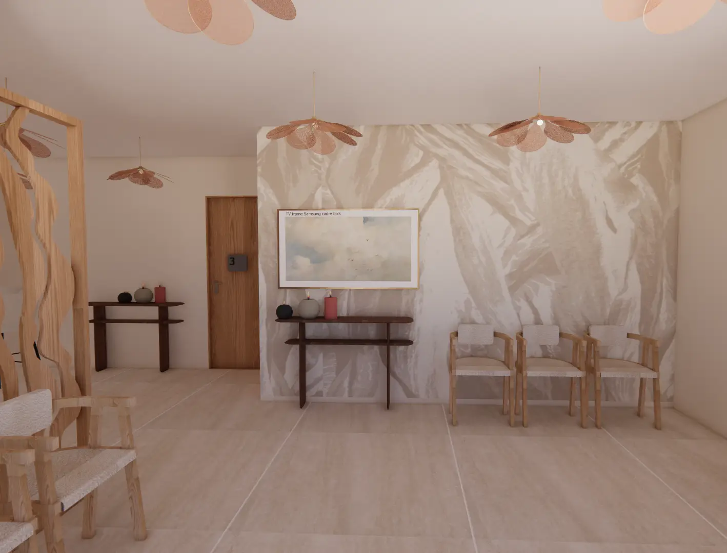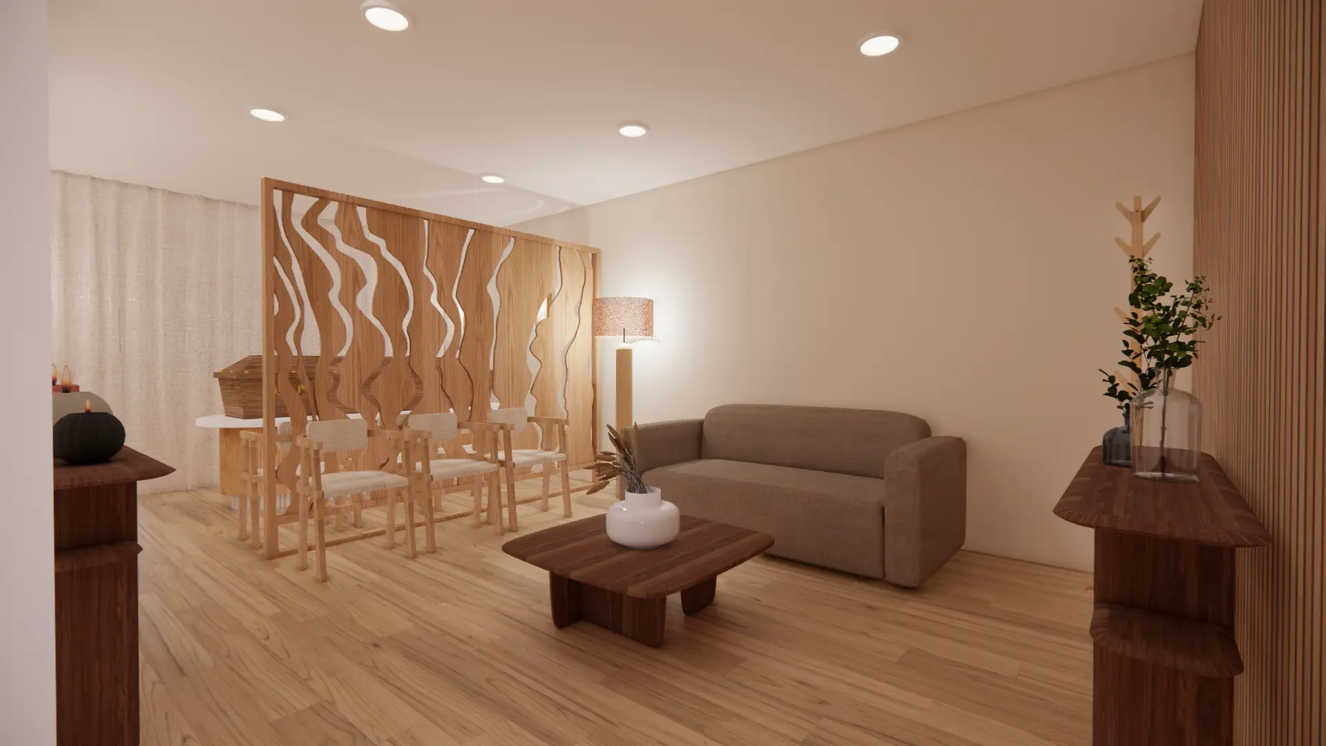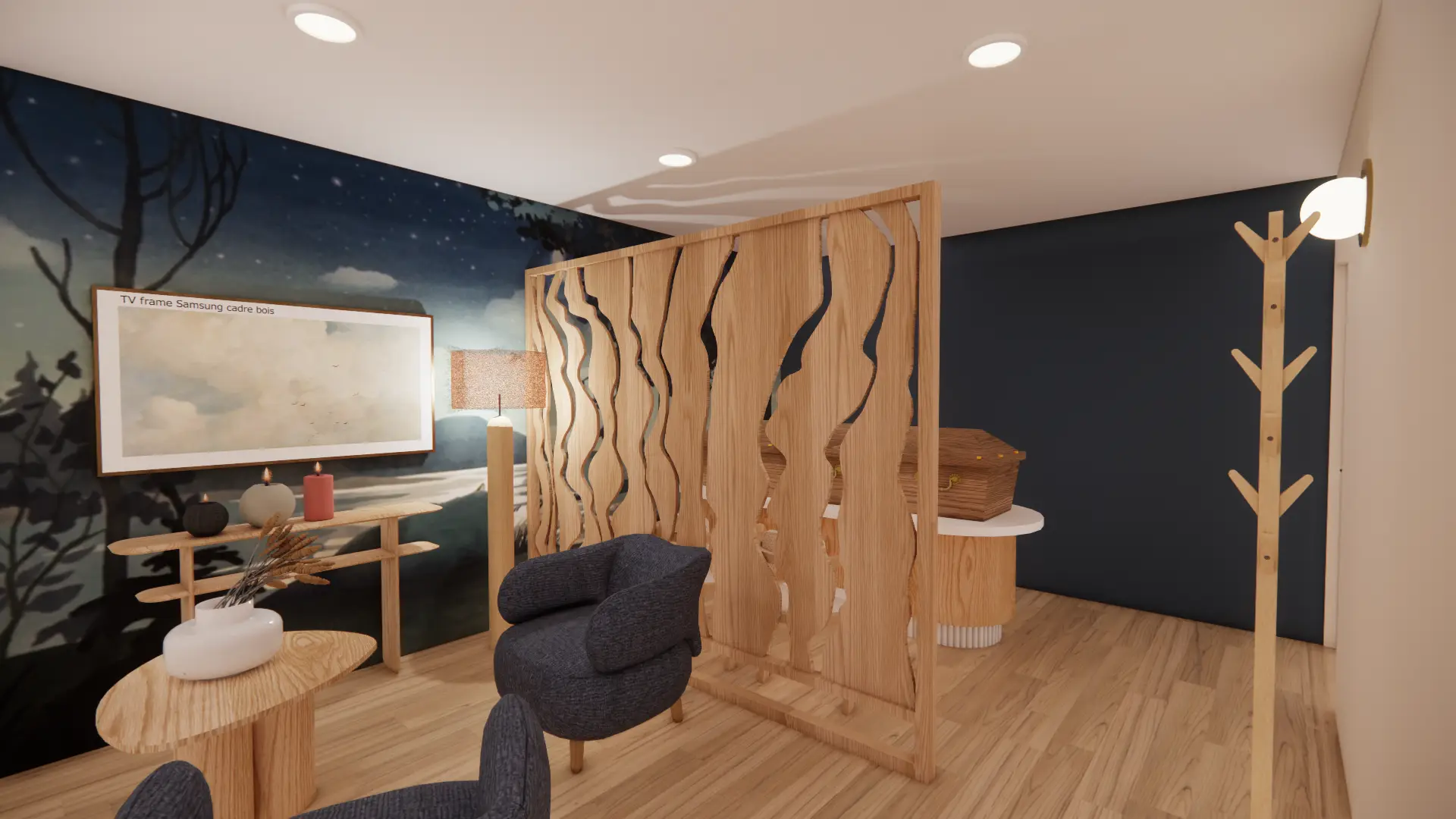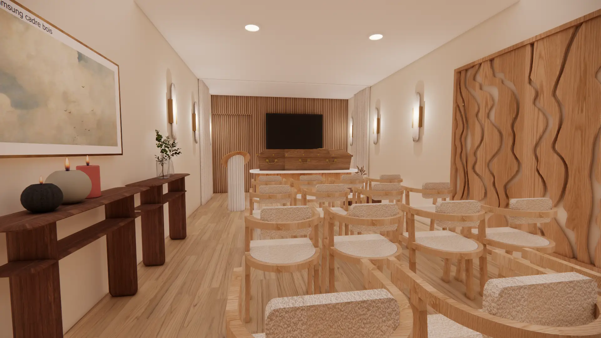 Dans le cadre de la construction d’un funérarium, mon client m’a demandé de l’accompagner dans le choix des matériaux, des couleurs et du mobilier pour 3 chambres funéraires et l’accueil du bâtiment.