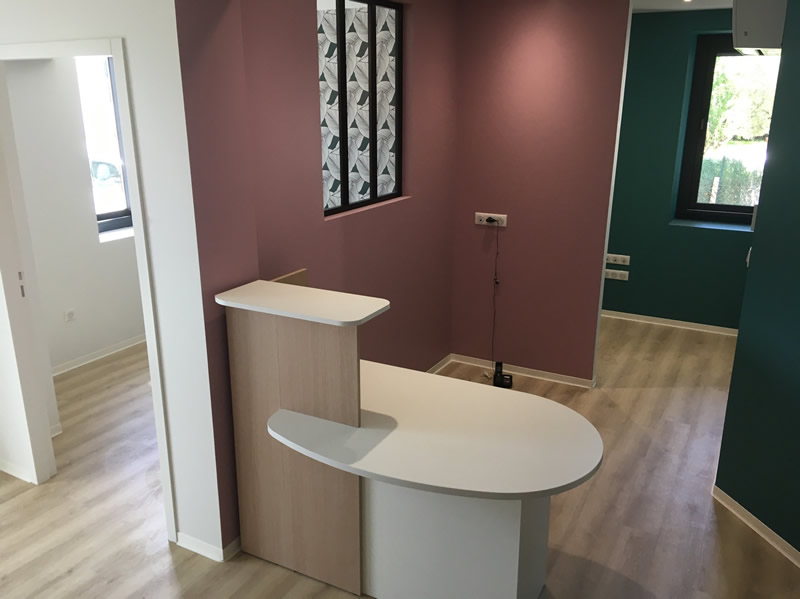 Conseil sur le mobilier, les couleurs et matériaux pour un cabinet dentaire à Castres.