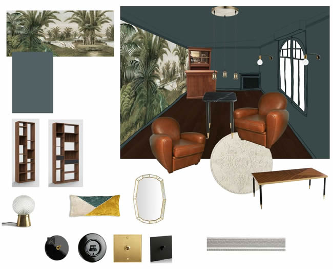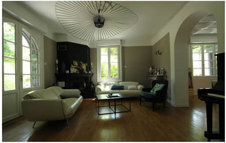Conseil sur l’aménagement et la décoration du séjour, de la salle à manger, d’un salon-fumoir et d’un bureau pour une belle et grande maison à Toulouse.