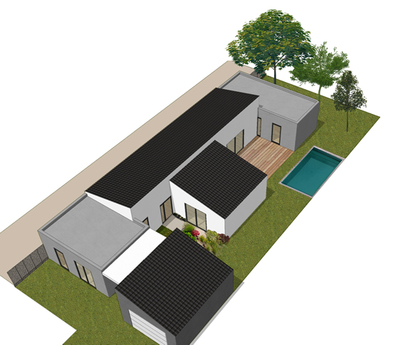 Je suis spécialisée dans la rénovation mais j’ai accepté pour cet ancien client de réaliser un permis de construire pour la construction de sa future maison. Il s’agissait de l’implantation d’une maison individuelle sur une parcelle en drapeau, dans le centre-ville d’Albi.