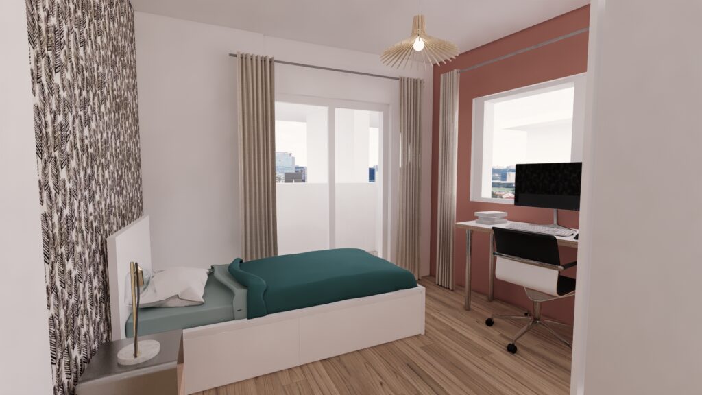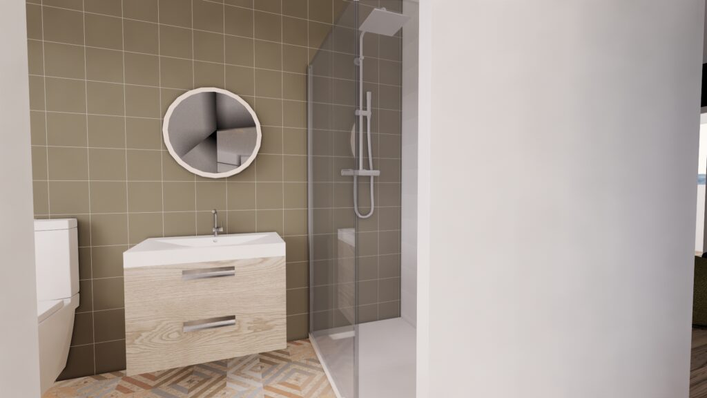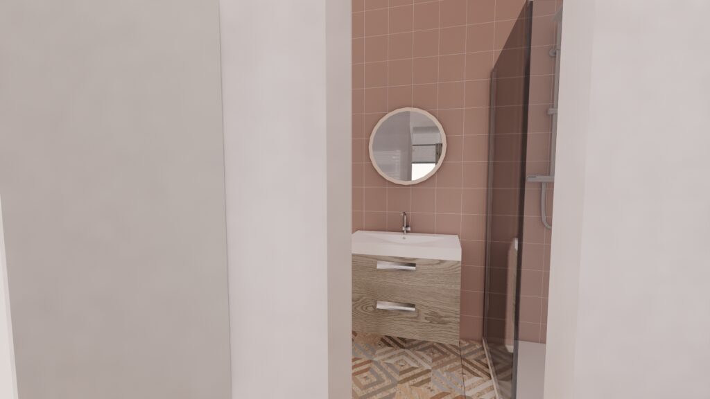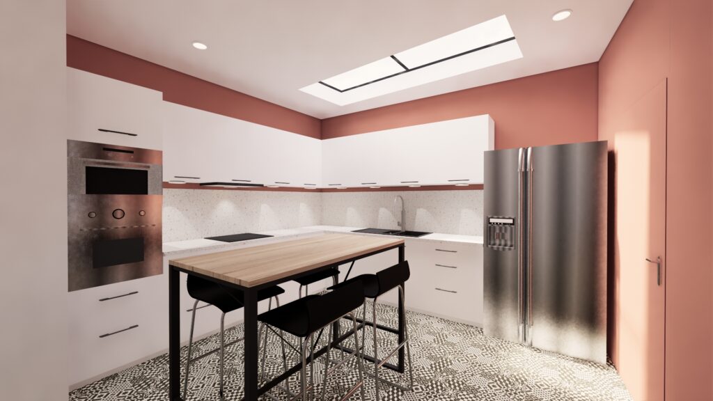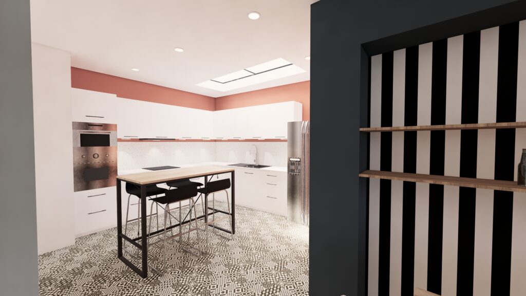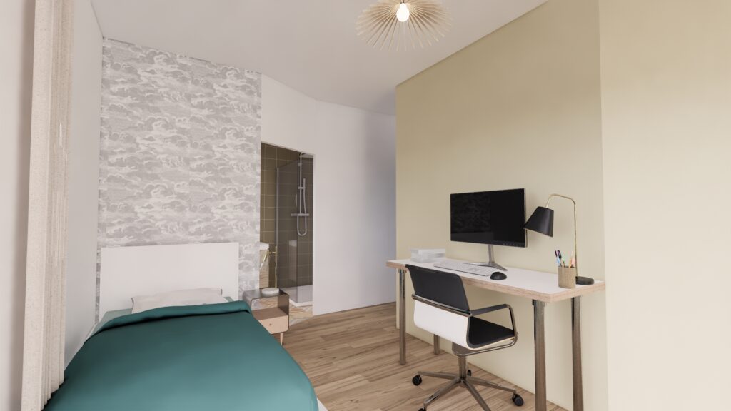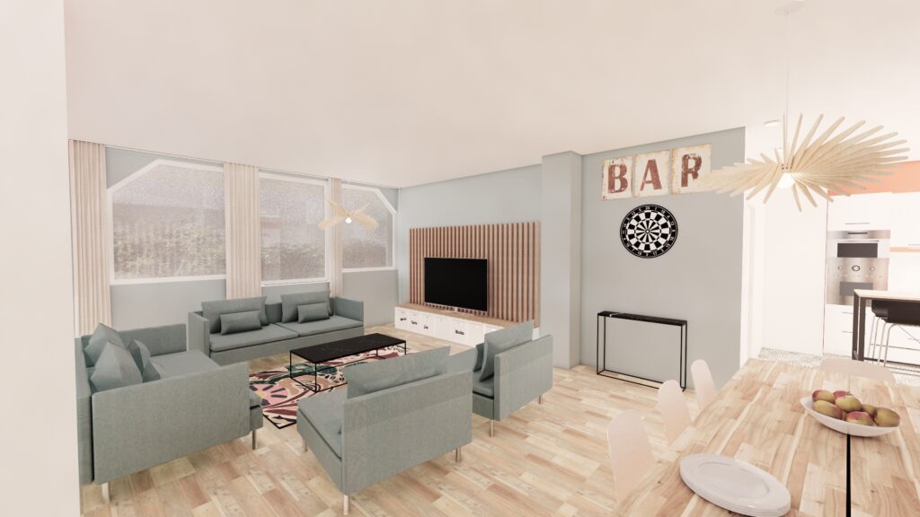 Mon client m’a contacté afin de transformer cette maison de 220m² afin d’y créer une résidence avec salle de sport, pièce de vie et cuisine communes, ainsi que 6 chambres avec leur SDE/WC privative.
